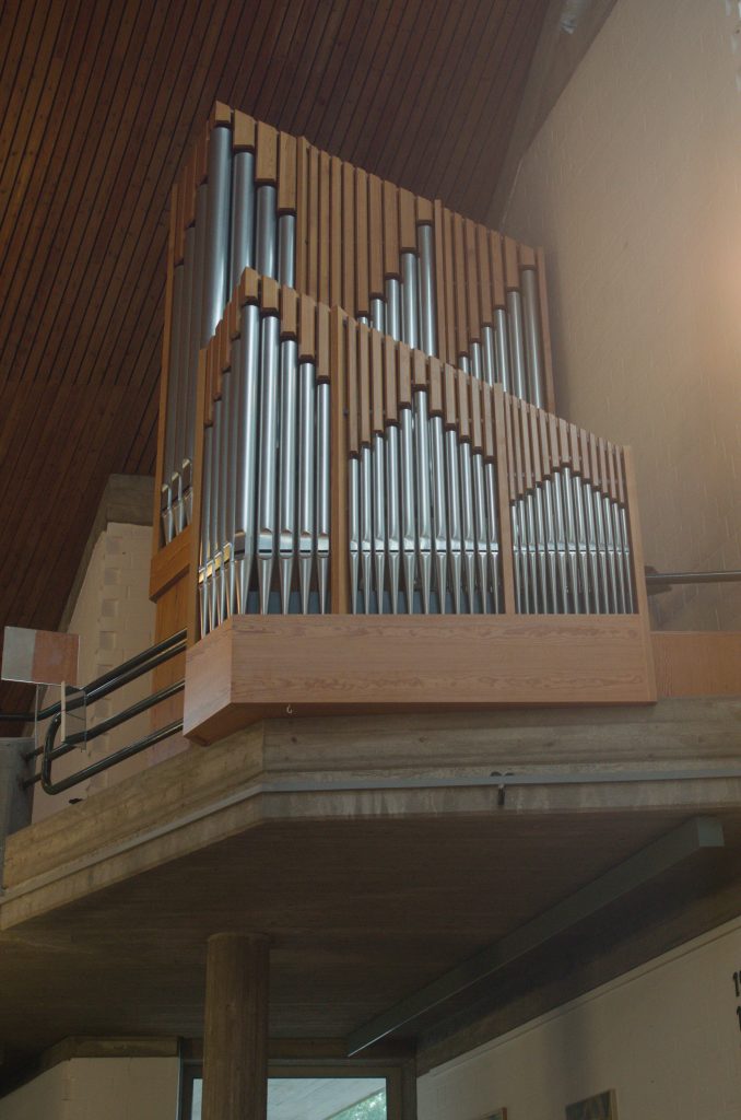 Die Register Spitzflöäte 4″ und Trompete 8″ im Pedal sind Transmissionen aus dem Hauptwerk. Die Terz 1 1/3 im Rückpositiv ist eine Extraktion aus der Sesquialter 2 2/3.